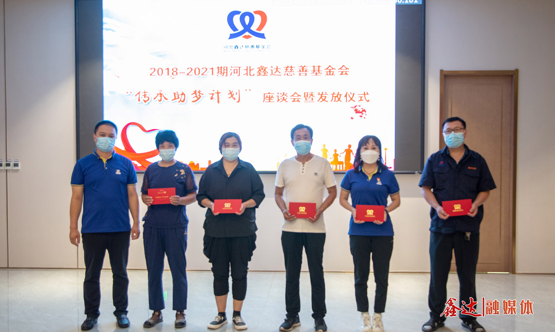 2019年8月22日,2018-2019河北鑫達慈善基金會“傳承助夢計劃”座談會暨助學金發放儀式在集團行政辦公樓圓滿召開。儀式上,來自集團各公司的40余名員工及其子女,分別獲得10000元助學金,其中2019期學生發放第一學年助學金5000元,2018期學生發放第二學年助學金2000元,其余部分按標準逐期發放。